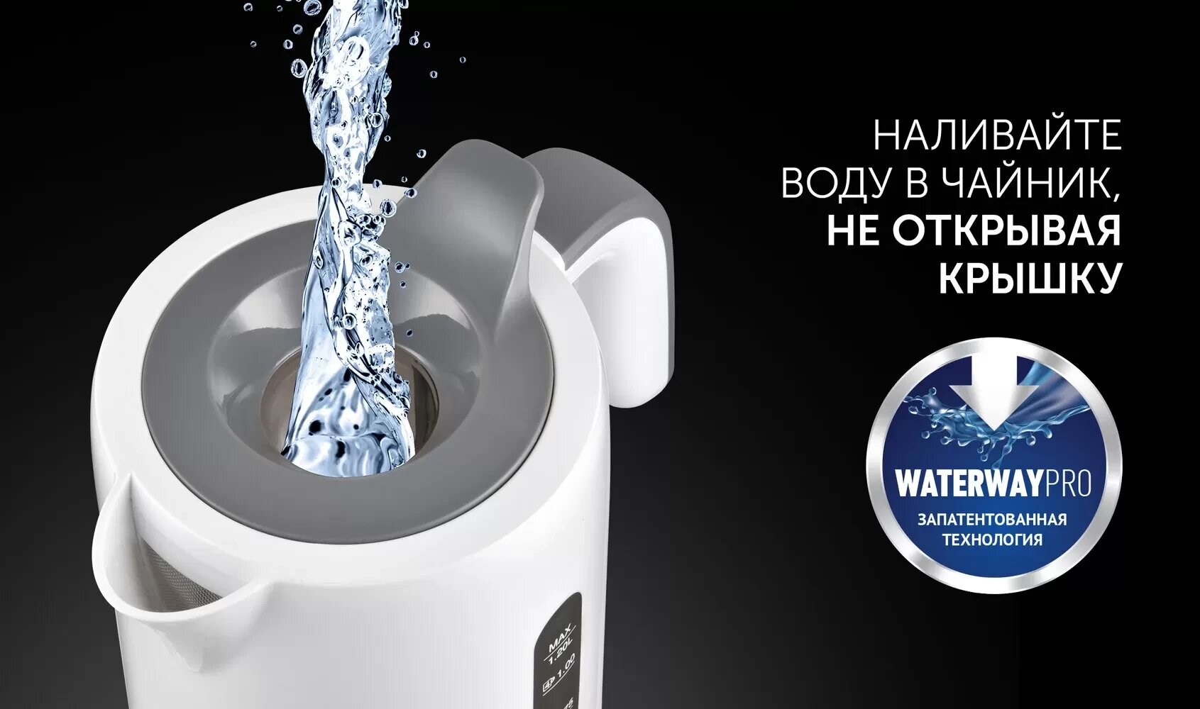 Электрический чайник Polaris PWK 1220C Water Way Pro с верхним заливом, объем 1,2 литра, Белый