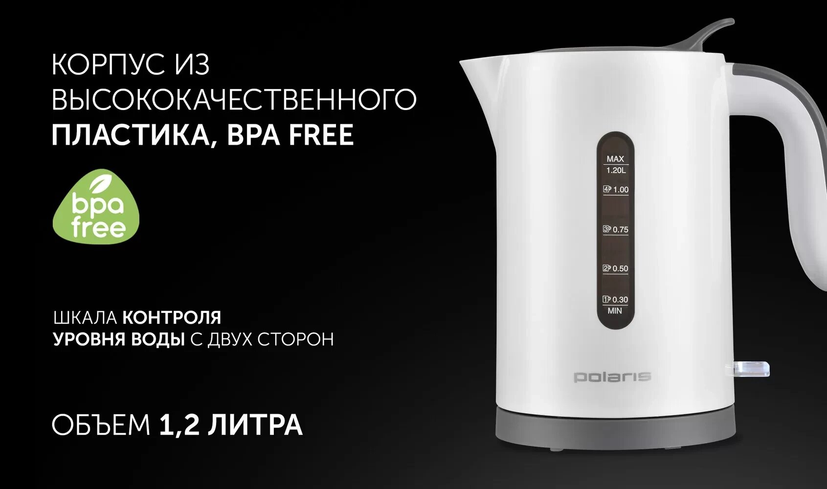 Купить Чайник электрический Polaris PWK 1220C Water Way Pro, 2200Вт, белый