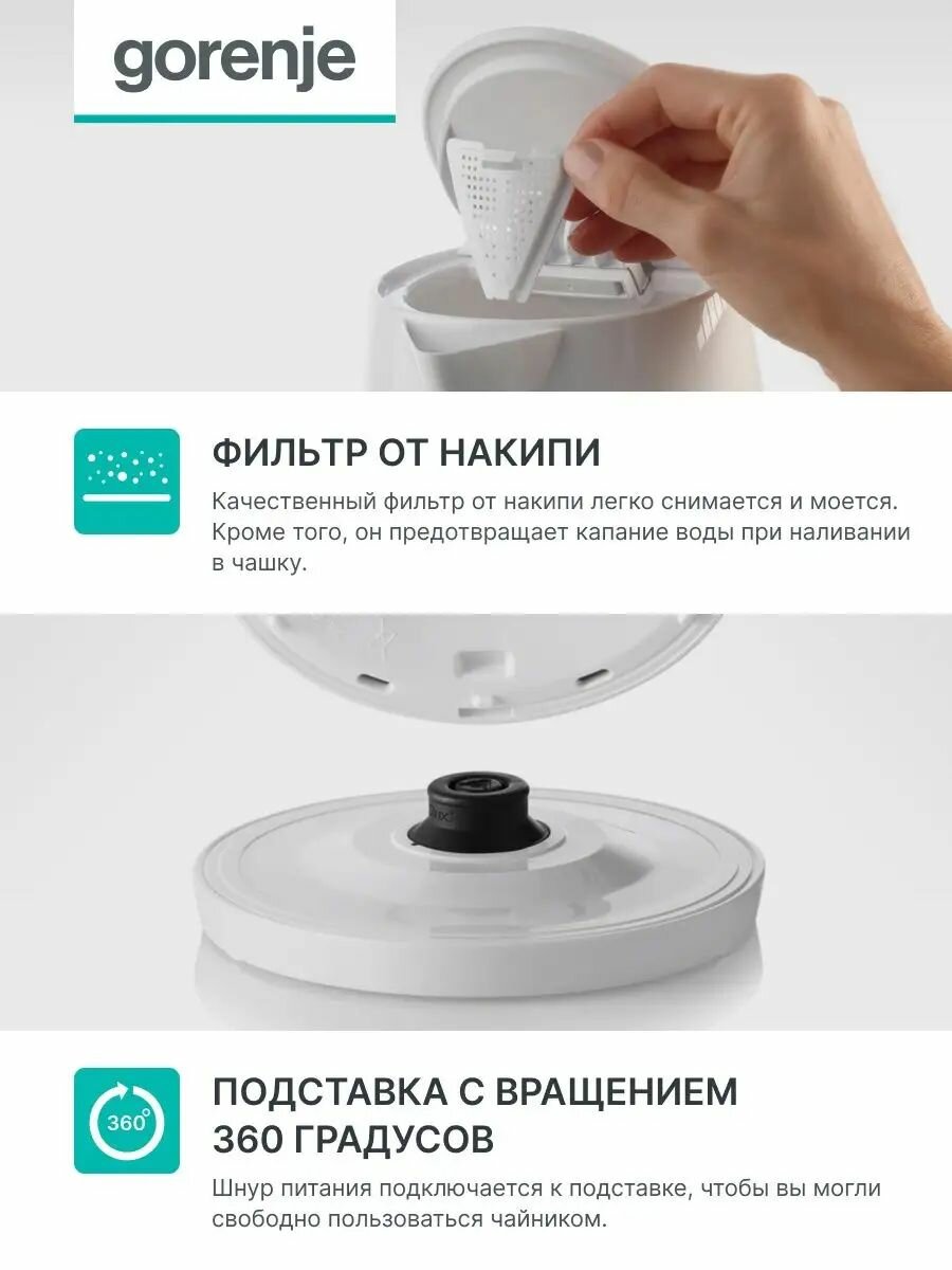 Чайник электрический Gorenje K17WE, белый и серебристый
