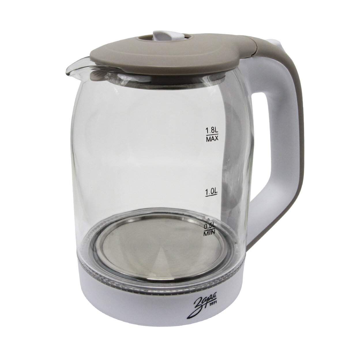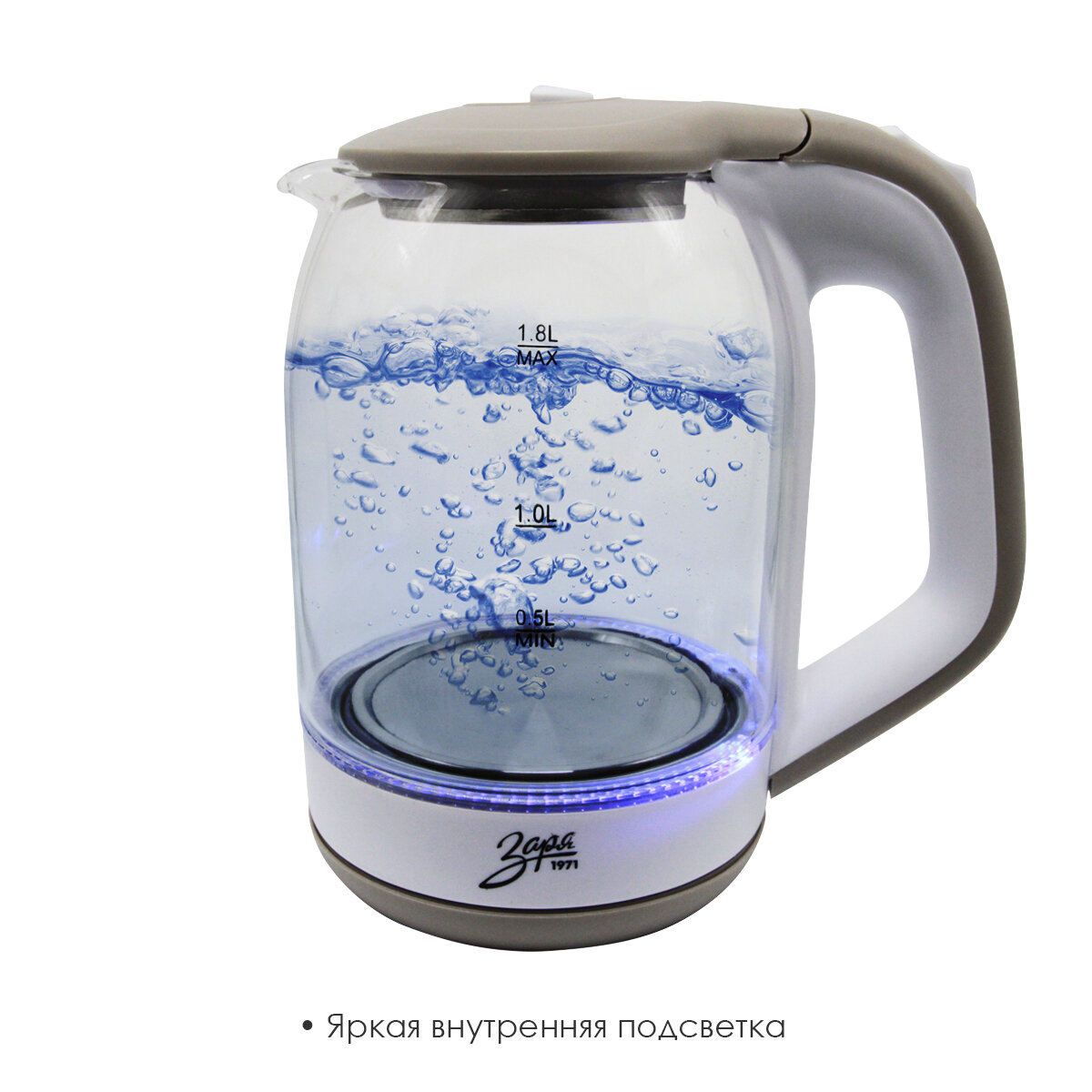 Купить Электрический чайник Заря 258-01 1.8 л / стеклянный / с подсветкой / дисковый ТЭН / автоотключение / поворот на 360 / электрочайник / 1500 Вт / белый