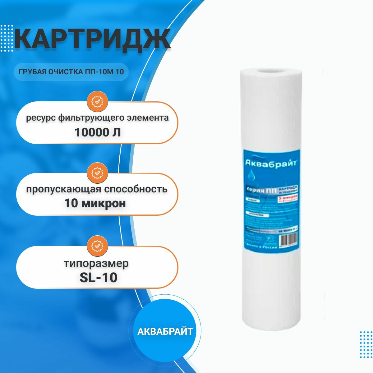 Аквабрайт картридж для механической очистки ПП-10М, 1 уп, 1 шт.
