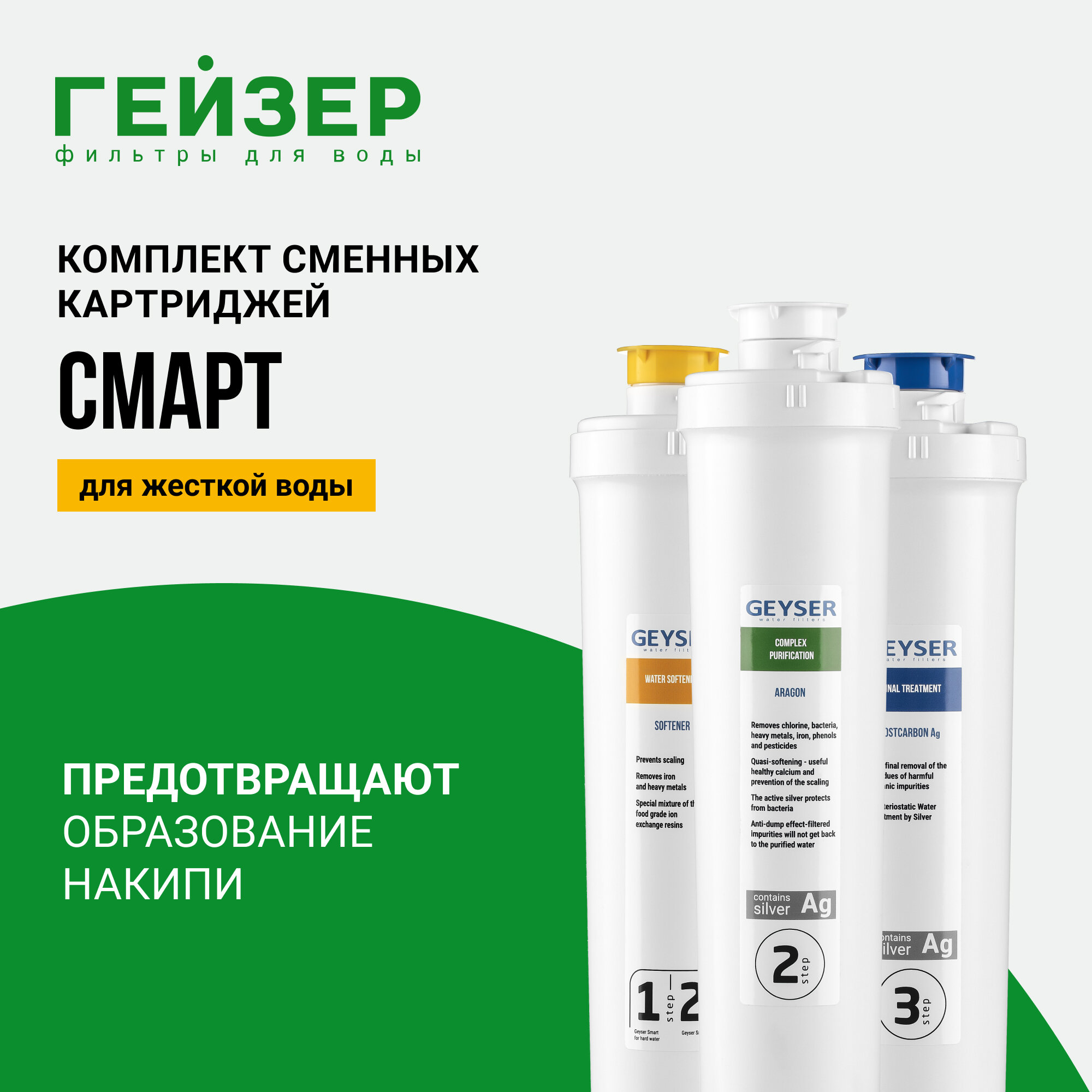 Комплект картриджей Гейзер Смарт для жесткой воды, сочетание уникальных технологий Каталон + Арагон, 50095