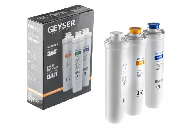 Комплект картриджей Гейзер Смарт комплексная очистка, удаляет механические частицы и химические примеси, 50106