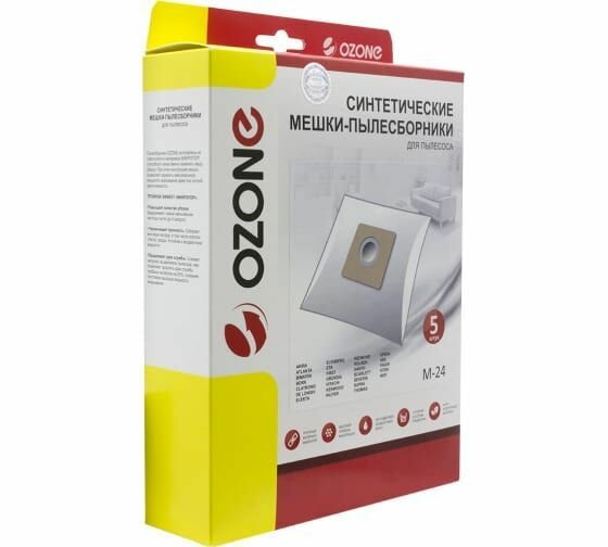 M-24 Мешки-пылесборники Ozone синтетические для пылесоса, 5 шт + микрофильтр