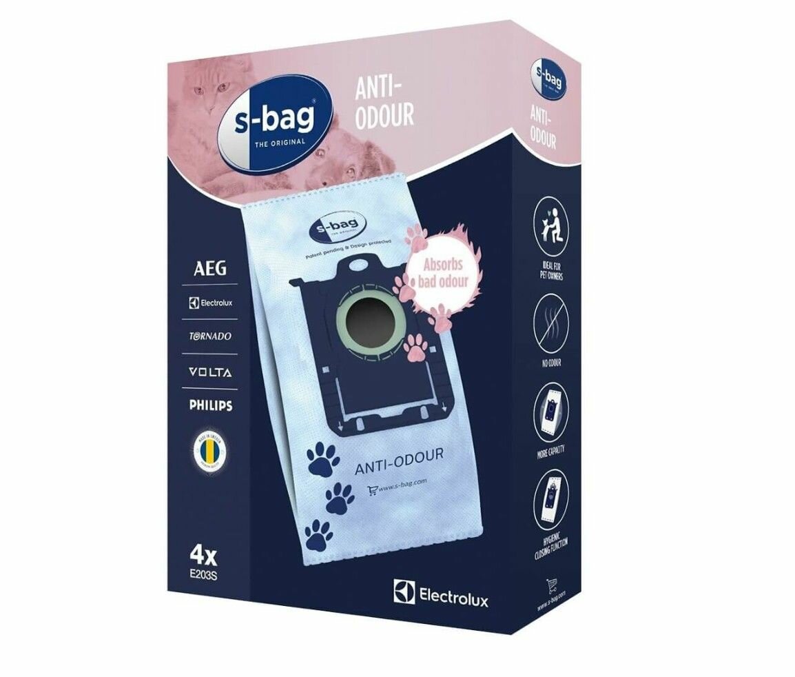 Мешки для пылесоса Philips, Electrolux, Bork e203s sBag Anti-Odour пылесборники с защитой от запахов, 4 шт.
