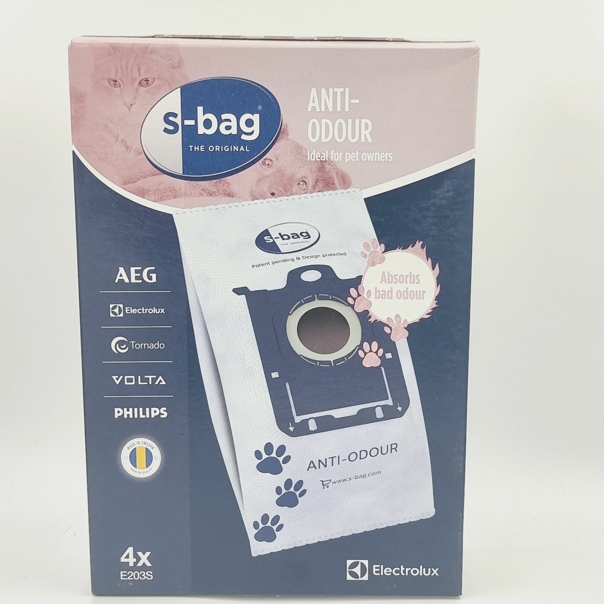 Мешки для пылесоса PHILIPS, ELECTROLUX E203S ANTI-ODOUR одноразовые пылесборники с защитой от запахов, s-bag, 4 ш. Оригинал! т.