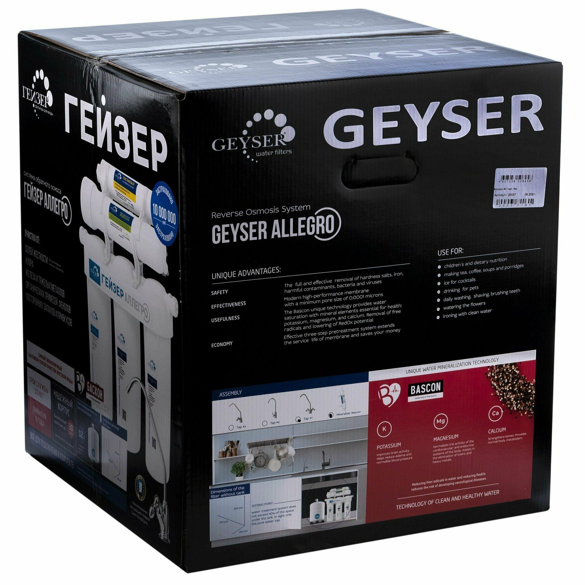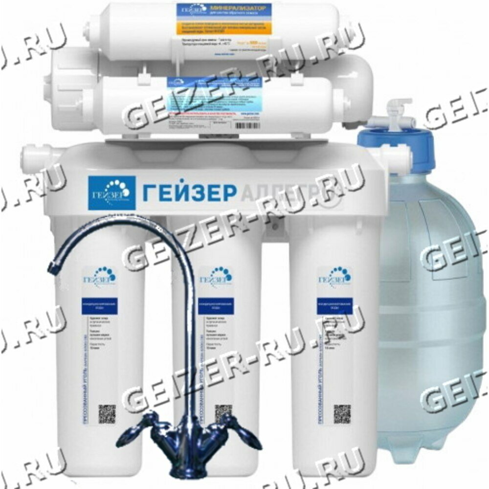 Система обратного осмоса Гейзер Аллегро, глубокая очистка воды от различных примесей, включая бактерии и вирусы, 20036