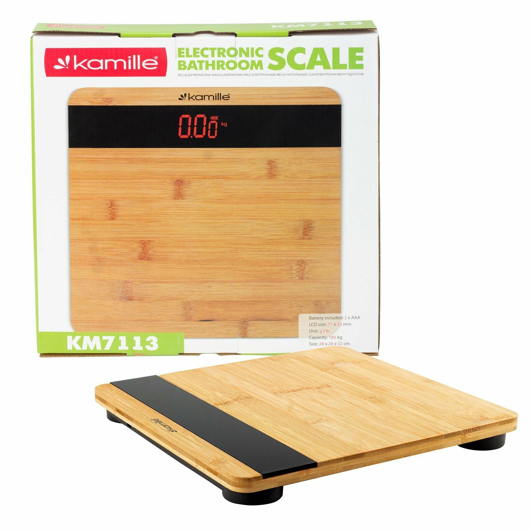 Весы напольные электронные Kamille KM-7113 платформа из бамбука