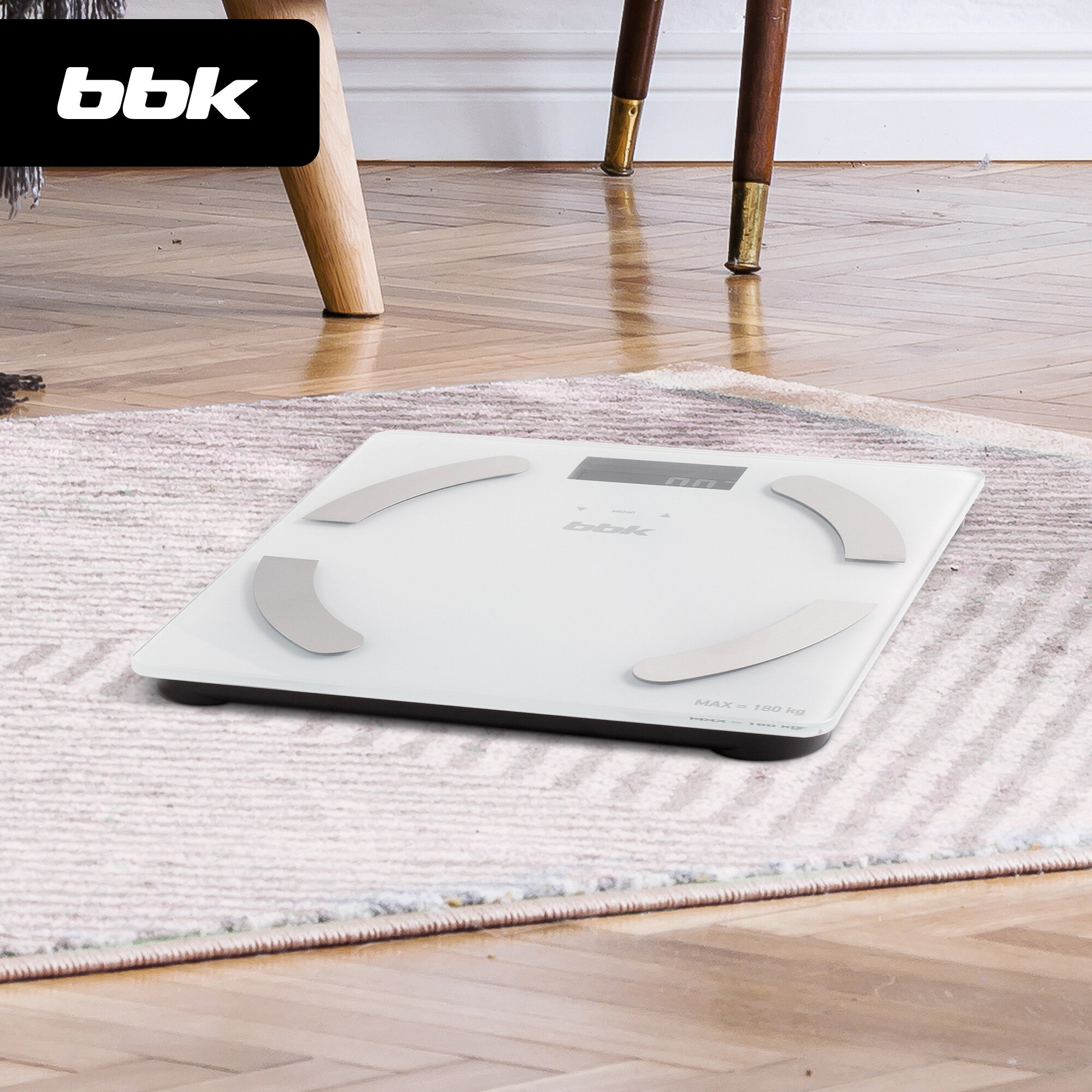Весы напольные электронные BBK BCS5001GM слоновая кость, LCD-дисплей, максимальный вес 180 кг, точность измерения 100 грамм, детальная расшифровка показателей