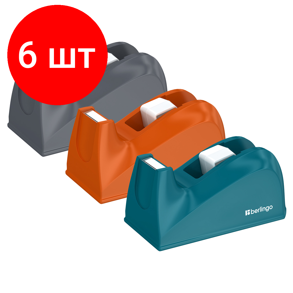 Купить Комплект 6 шт, Диспенсер настольный Berlingo для канцелярской клейкой ленты, ассорти
