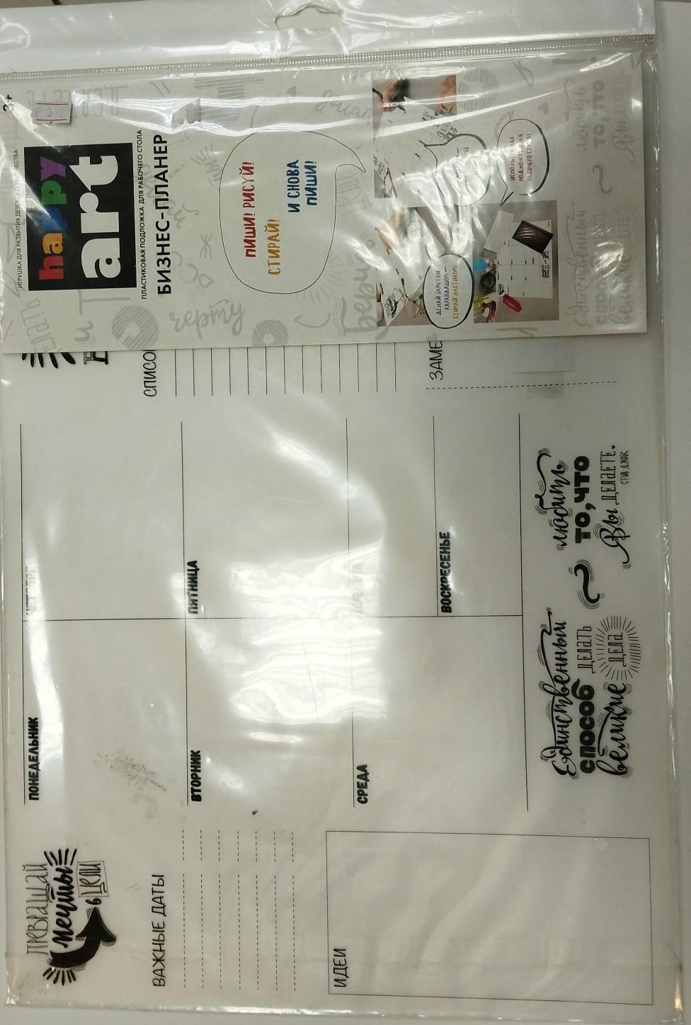 Коврик-раскраска многоразовый "Бизнес-планер" 48 х 34 см прозрачный