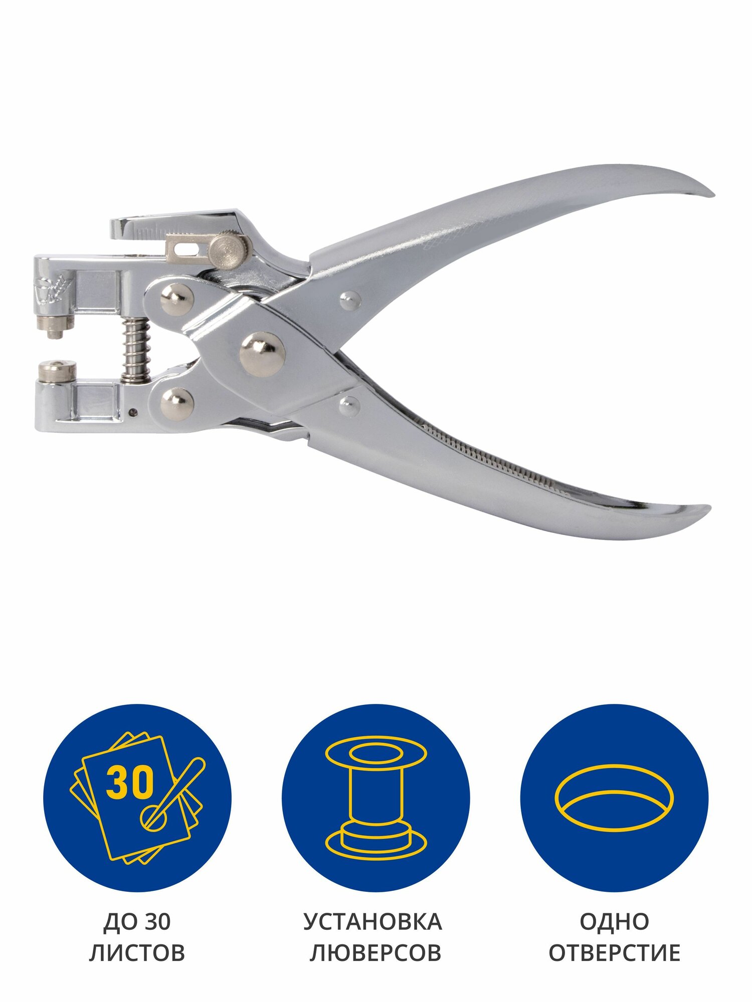 Дырокол для люверсов на 30 л, на одно отверстие, серебристый