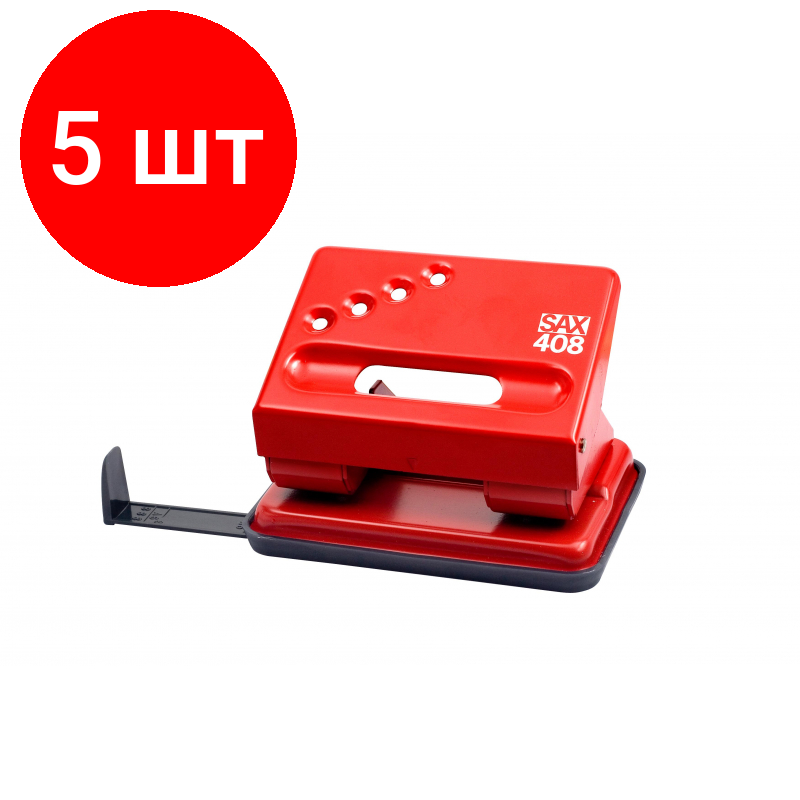 Купить Комплект 5 штук, Дырокол SAX 408 30 листов, с линейкой, красный