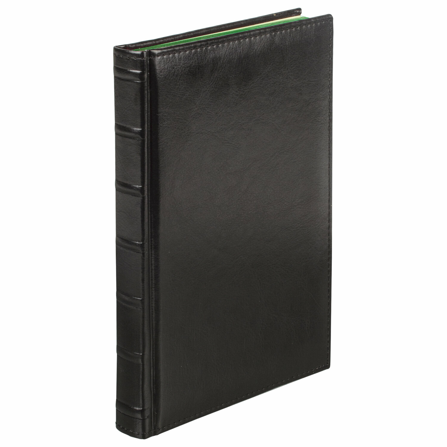 Ежедневник недатированный А5 138х213 мм BRAUBERG "FLAME", под кожу, 160 л., черный, зеленый срез, 113428, 113428