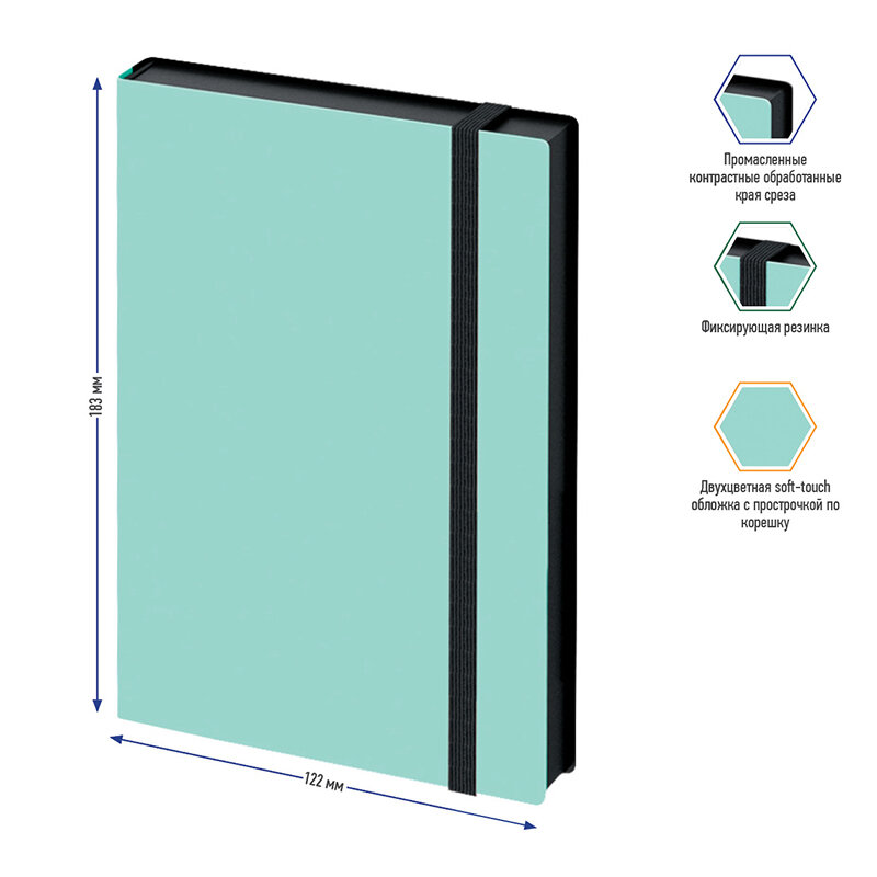 Ежедневник недатир. B6, 136л., кожзам, Berlingo "Instinct", черный/мятный, с резинкой (арт. 299194)