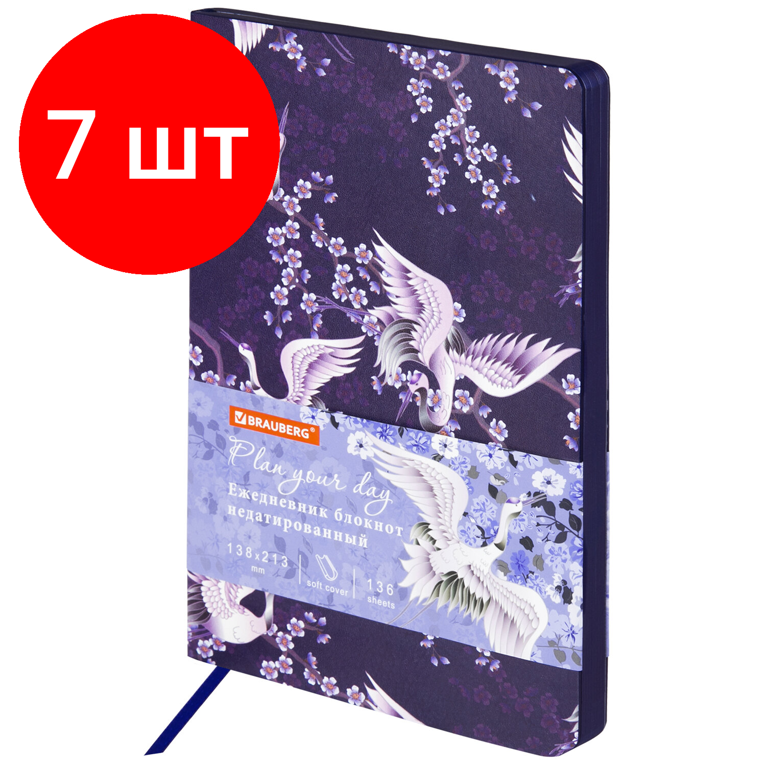 Купить Комплект 7 шт, Ежедневник недатированный А5 (138х213 мм), BRAUBERG VISTA, под кожу, гибкий, 136 л., "Cranes", 112025