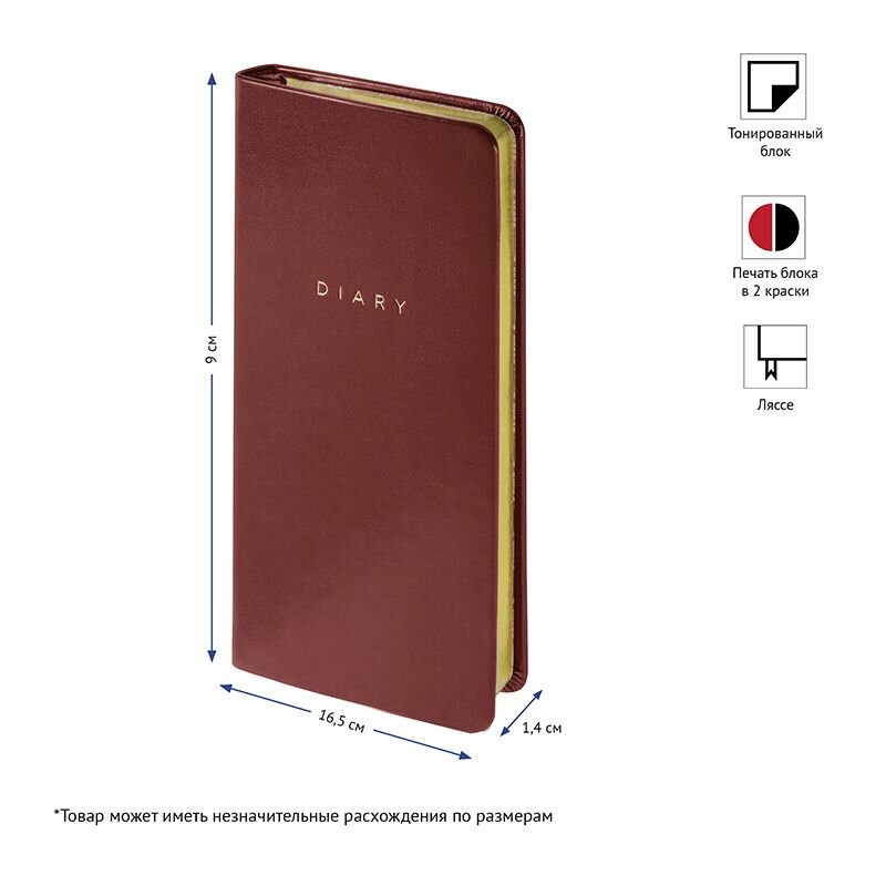 Еженедельник недатированный карманный, 64л., кожзам, OfficeSpace "Windsor ", коричневый, золотой срез