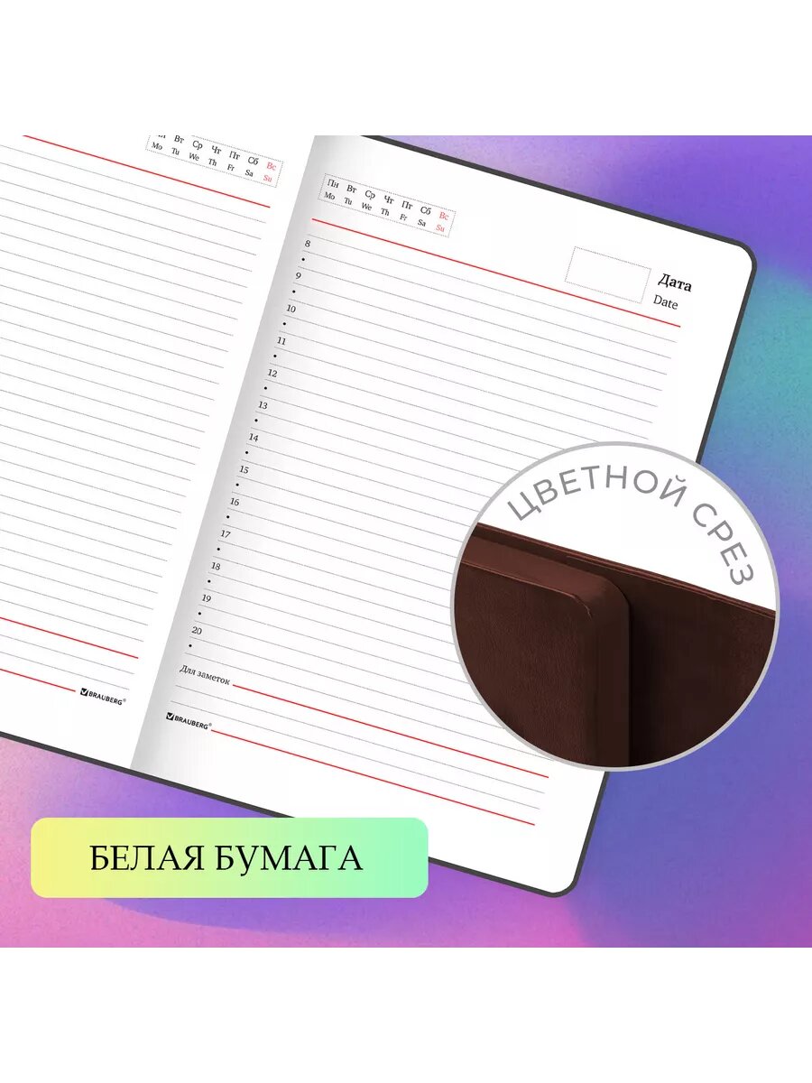 Ежедневник недатированный А5 (138х213 мм), BRAUBERG VISTA, под кожу, гибкий, 136 л., "Euphoria", 111998 В комплекте: 1шт.