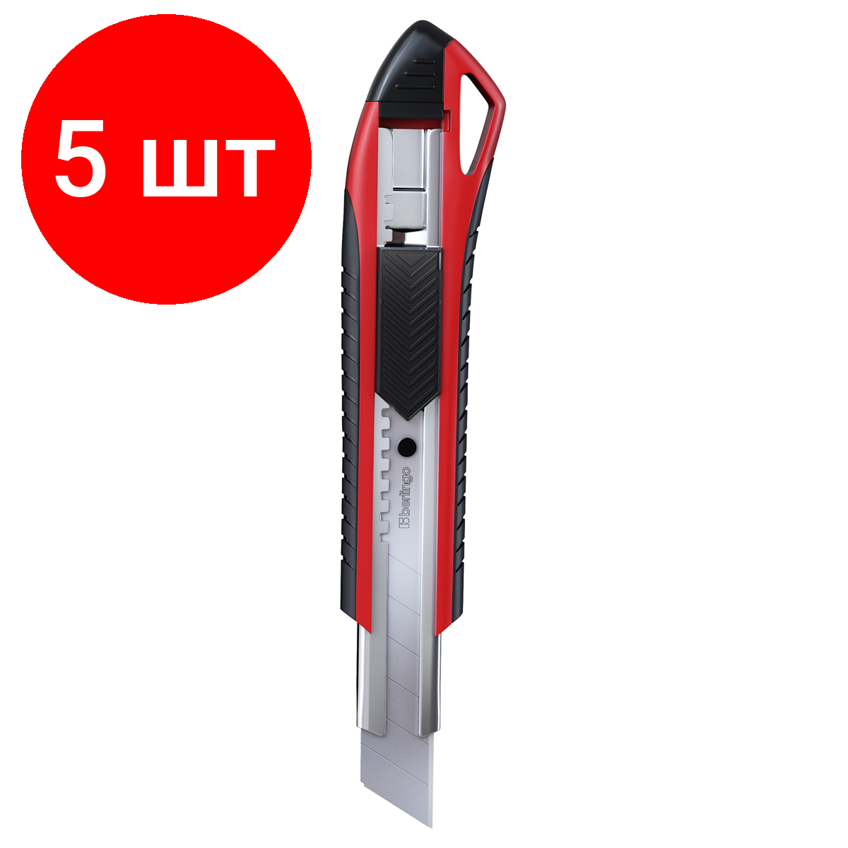 Купить Комплект 5 шт, Нож канцелярский 18мм Berlingo "Razzor 300", auto-lock, металл. направл., мягкие вставки, красный, европодвес
