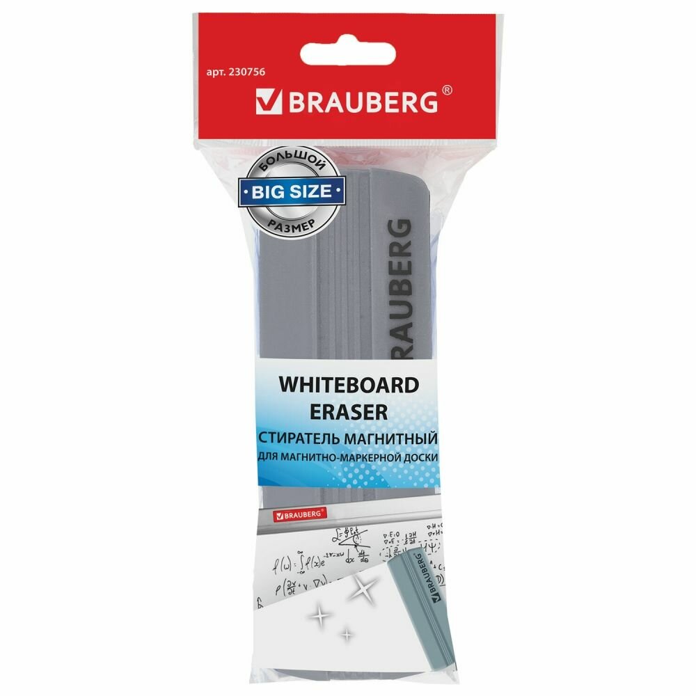 Стиратель для магнитно-маркерной доски (55х160 мм), упаковка с европодвесом, BRAUBERG, 230756 Комплект : 1 шт .