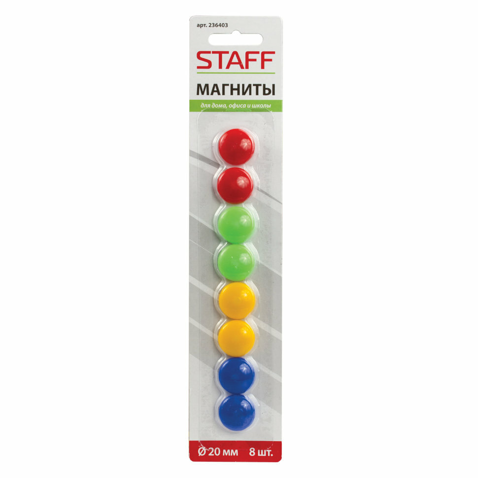 Магниты STAFF, диаметр 20 мм, 8 шт., цвета ассорти, в блистере, 236403