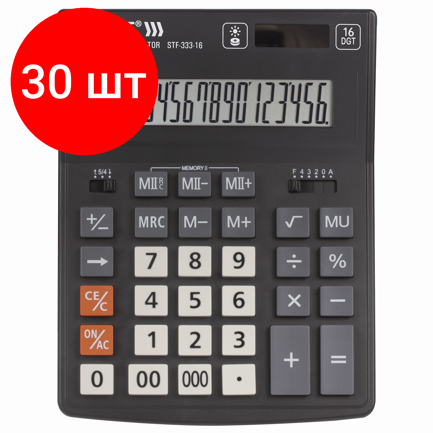 Купить Комплект 30 шт, Калькулятор настольный STAFF PLUS STF-333 (200x154 мм), 16 разрядов, двойное питание, 250417