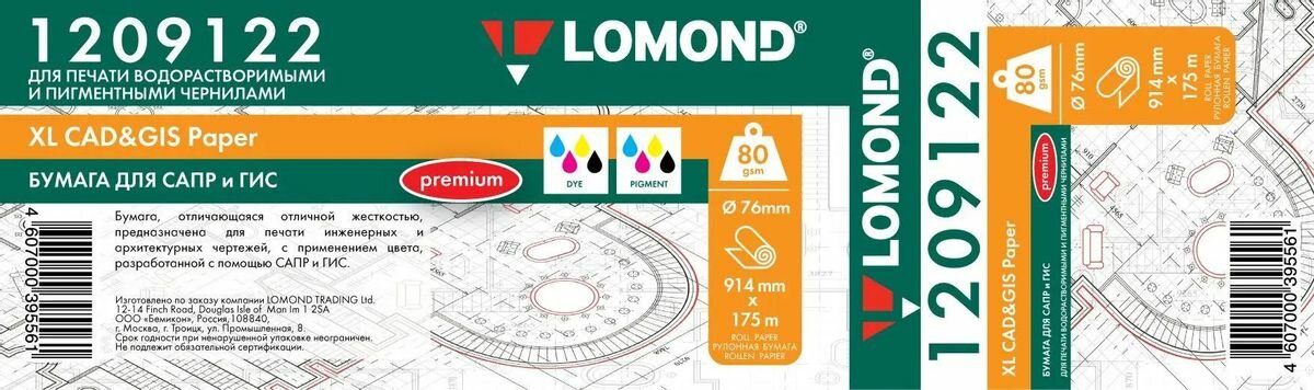 Бумага 36" Lomond 1209122 914мм*175м*76мм 80г/м2 Премиум