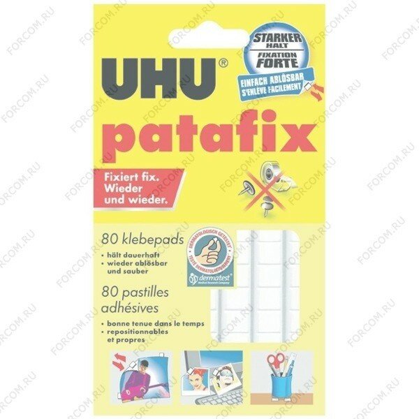 Подушечки клеящие UHU Patafix, 80 шт., бесследное удаление, многоразовые, белые, 39125 В комплекте: 1шт.