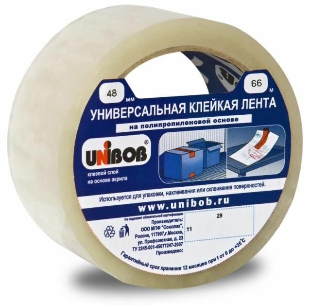 Клейкая лента упаковочная Unibob, 48мм*66м, 47мкм
