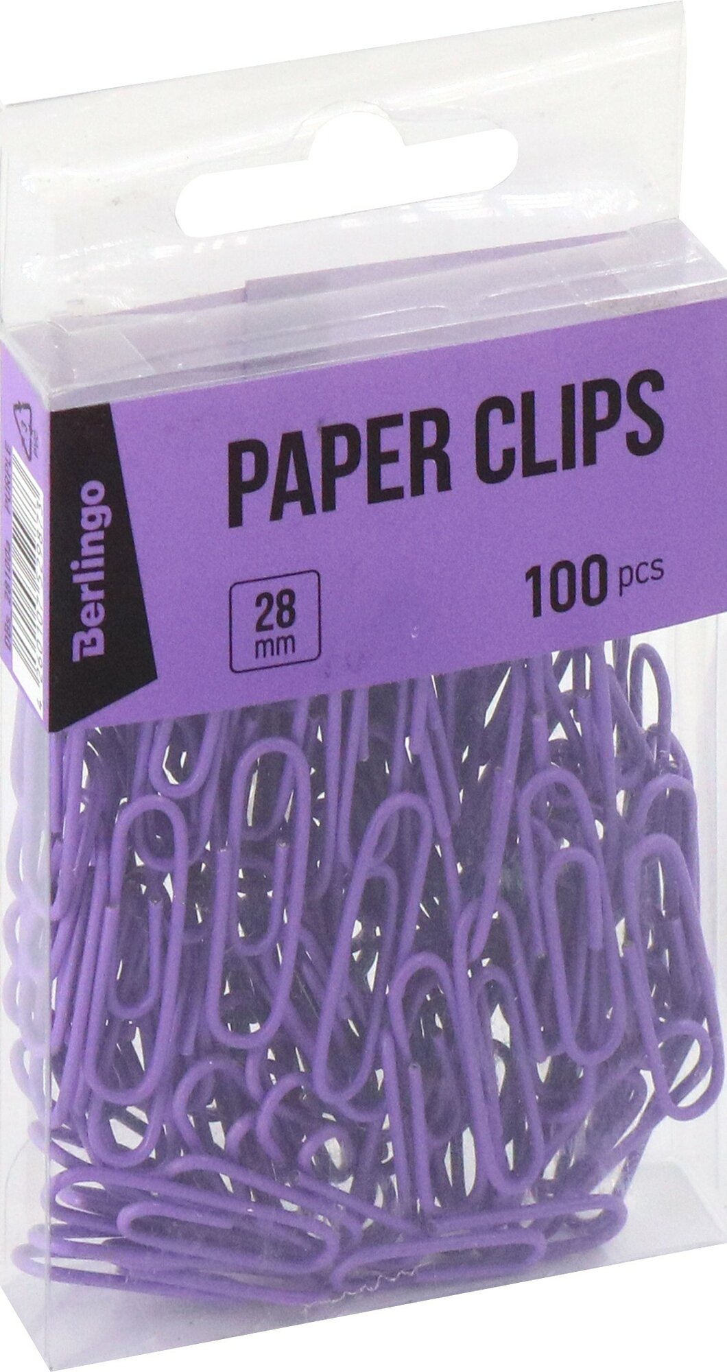 Скрепки 28мм, Berlingo, 100 шт, цветные, ПВХ упак., европодвес, фиолетовые (арт. 301702)