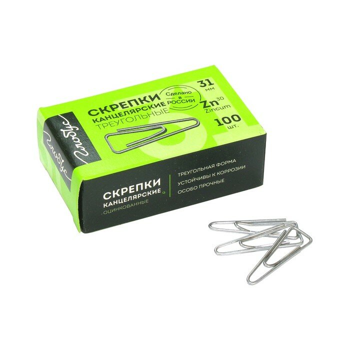 Купить Скрепки канцелярские , 100 шт., 31 мм, оцинкованные