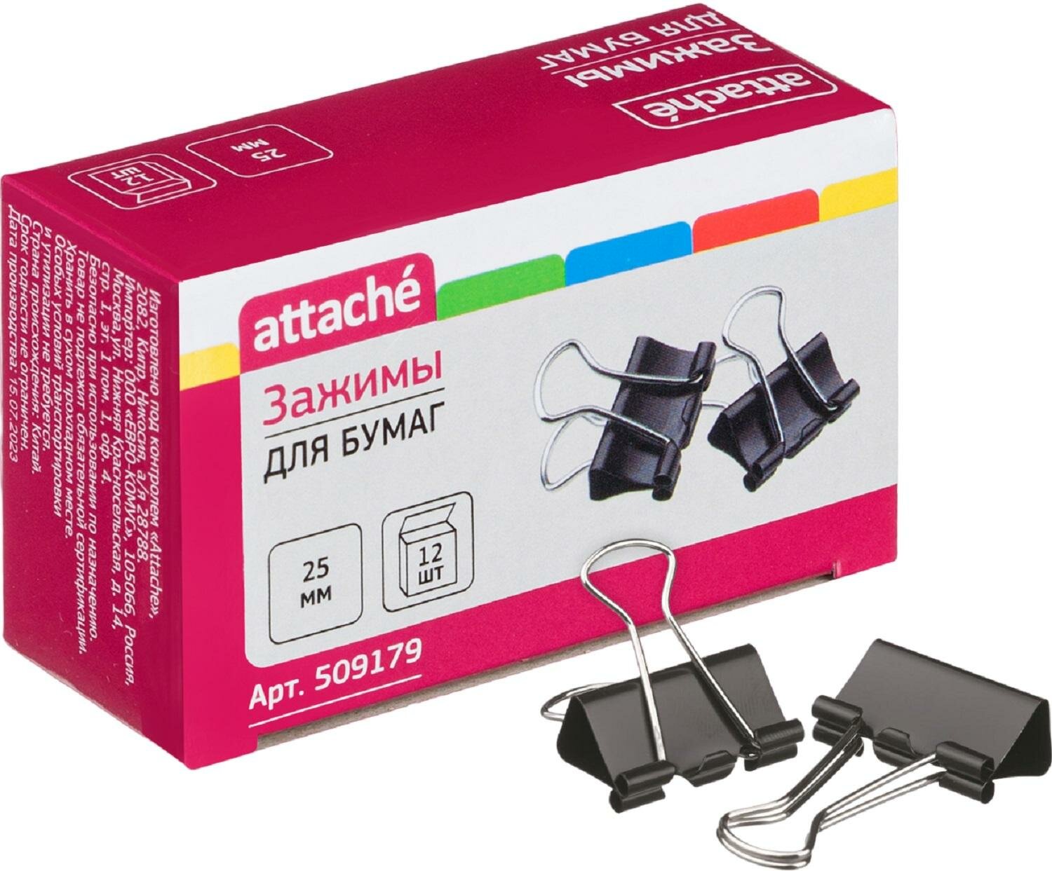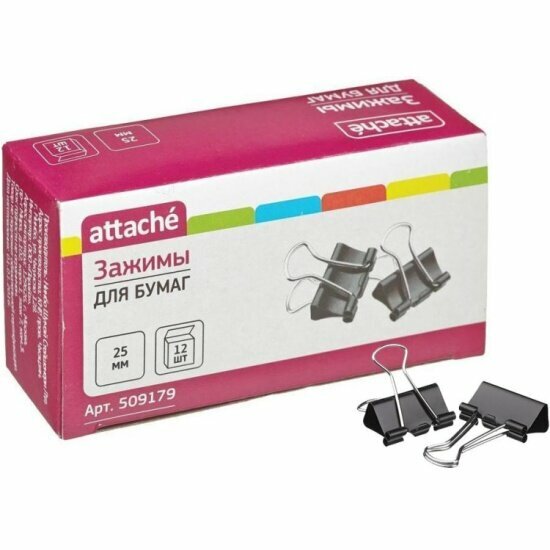 Зажимы для бумаг 25мм 12шт/уп Attache, в картонной коробке, 12 уп.
