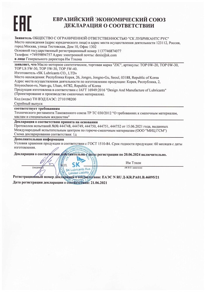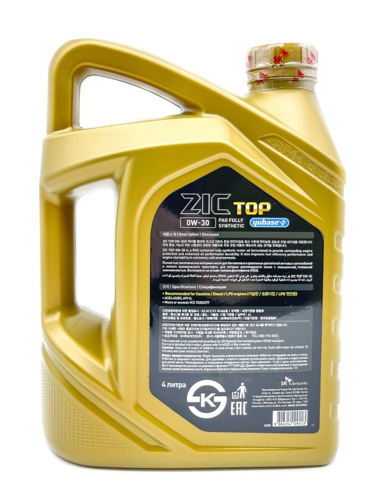 ZIC 162680 ZIC TOP 0W30 (4L)_масло моторное! синт.\API SL, ACEA A5/B5, VCC 95200377