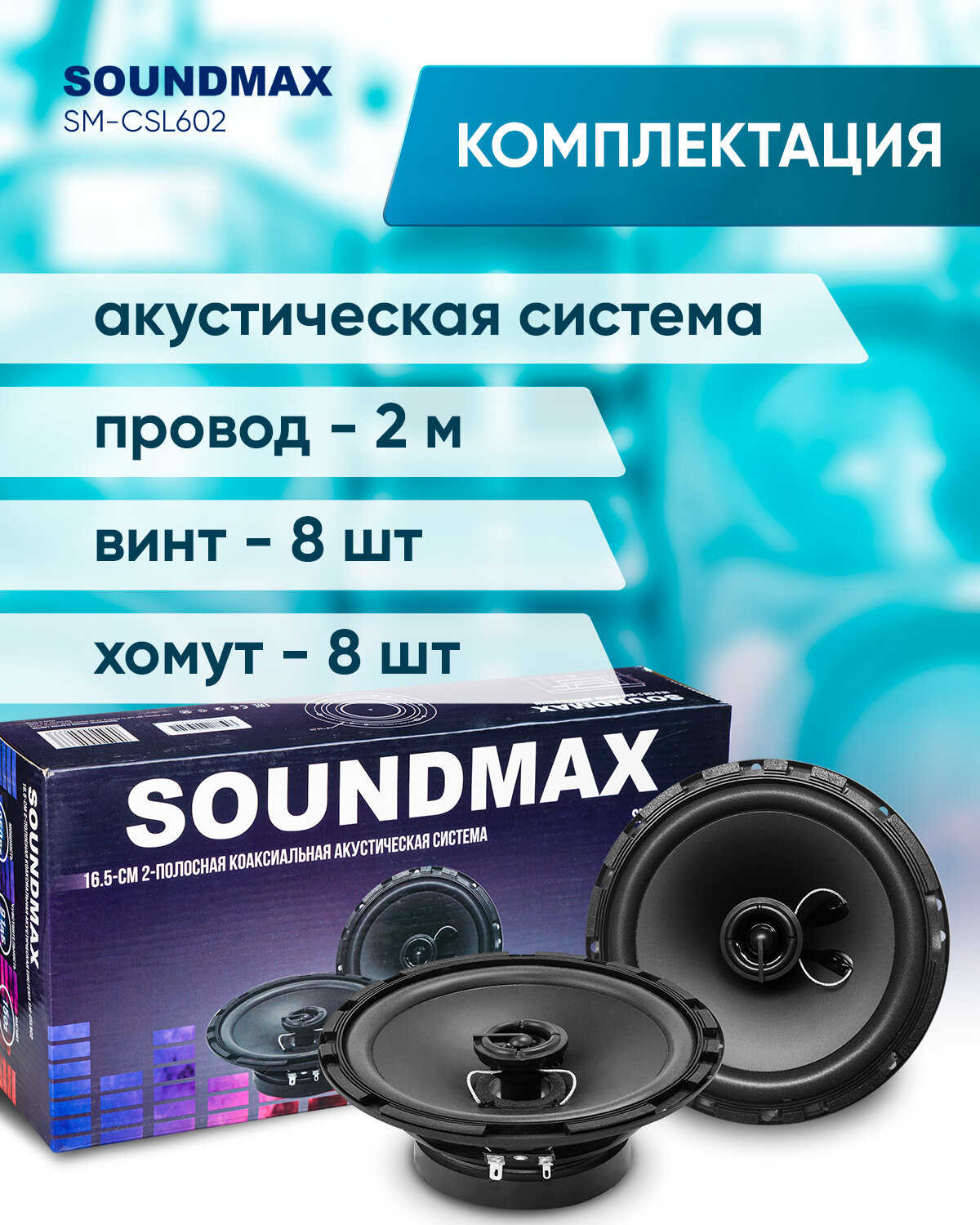 Колонки автомобильные Soundmax SM-CSL602, 16.5 см (6 1/2 дюйм.), комплект 2 шт.