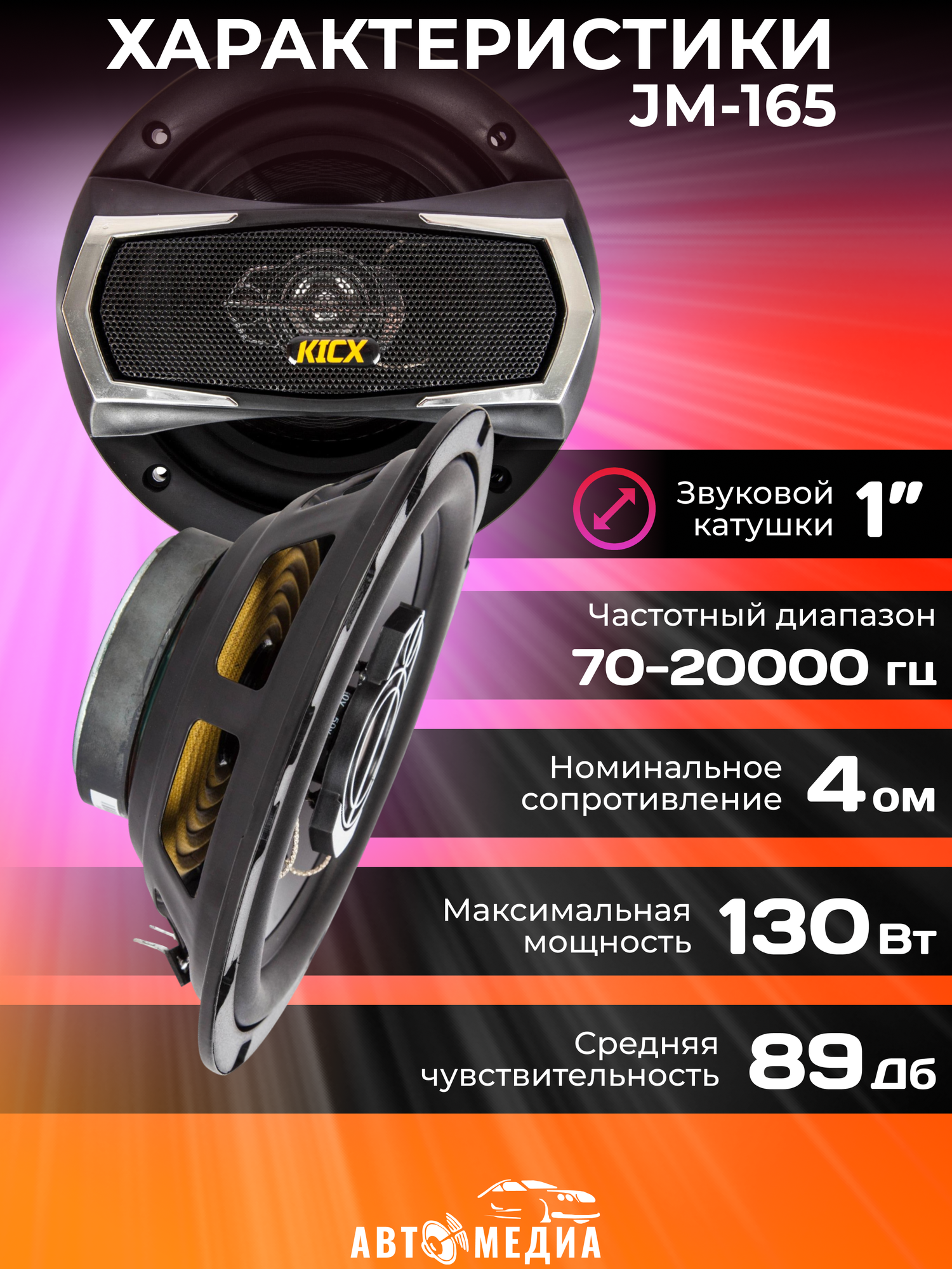 Колонки автомобильные Kicx JM-165 130Вт 89дБ 4Ом 16.5см (6 1/2дюйм) (ком.:2кол.) коаксиальные трехполосные