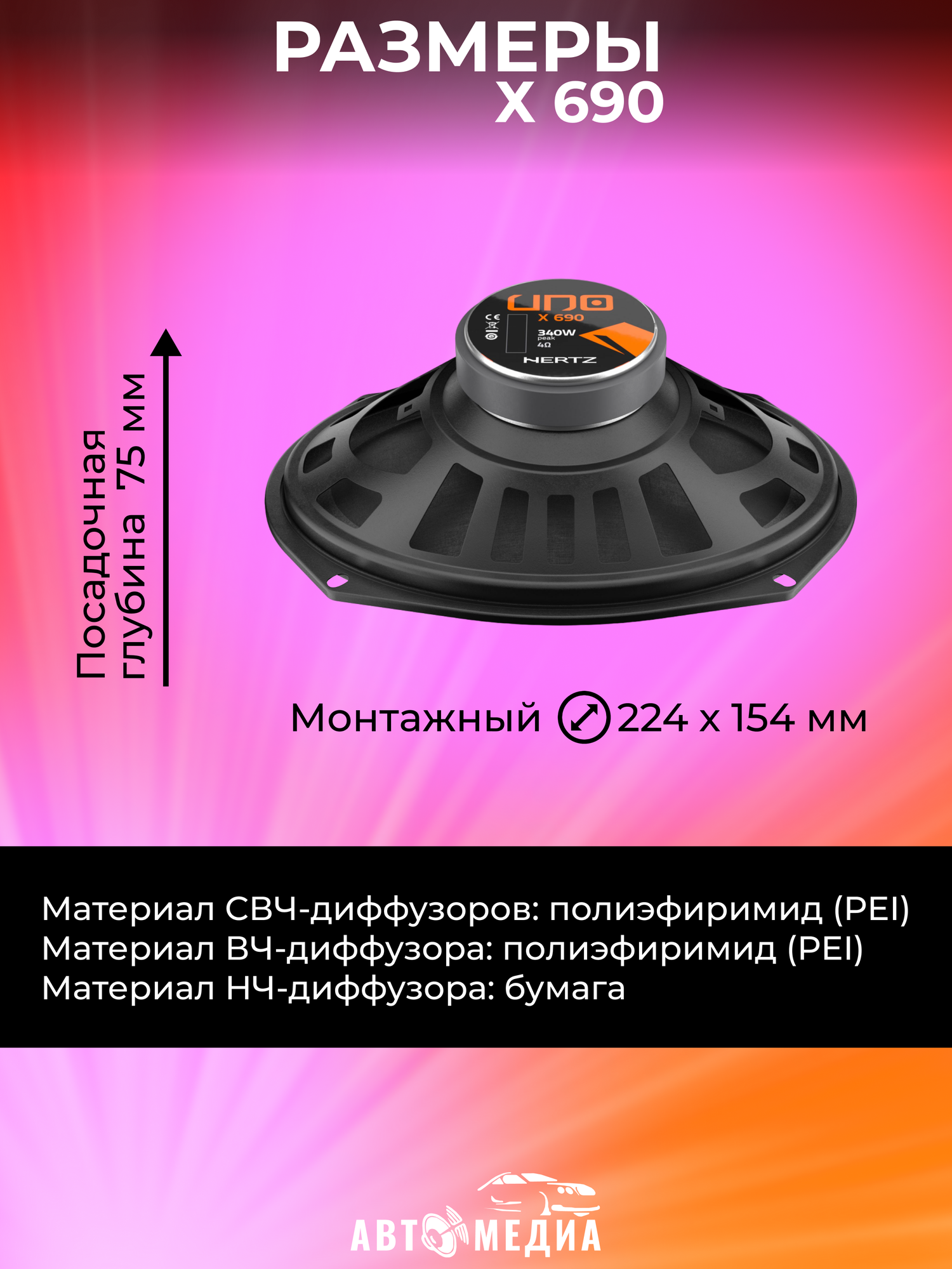 Ниже Вы можете прочитать отзывы на Коаксиальные динамики Hertz Uno X 690, ознакомится с подробными характеристиками, посмотреть интересные обзоры и фотографии на Коаксиальные динамики Hertz Uno X 690.