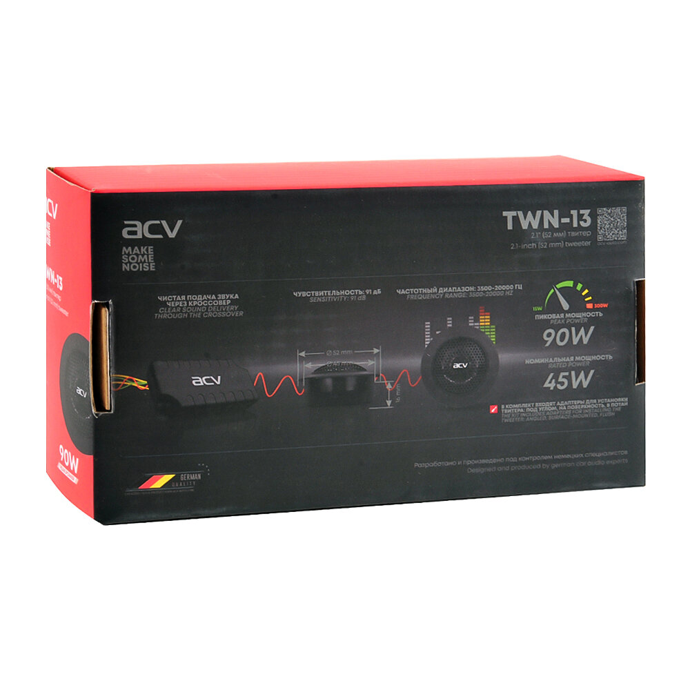 Колонки автомобильные ACV TWN-13 90Вт 91дБ 4Ом 2.8см (ком.:2кол.) твитер однополосные интересное: