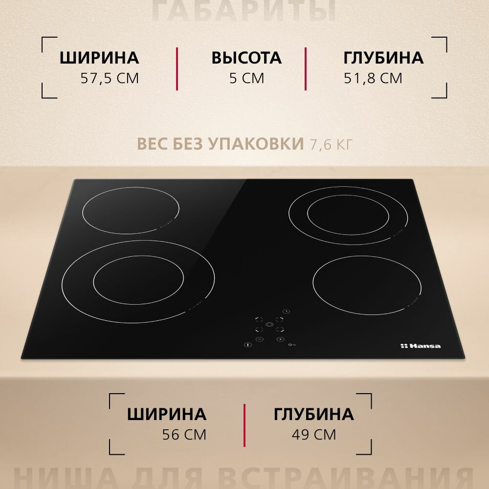 Электрическая варочная панель Hansa BHC66506 60 см 4 конфорки цвет чёрный