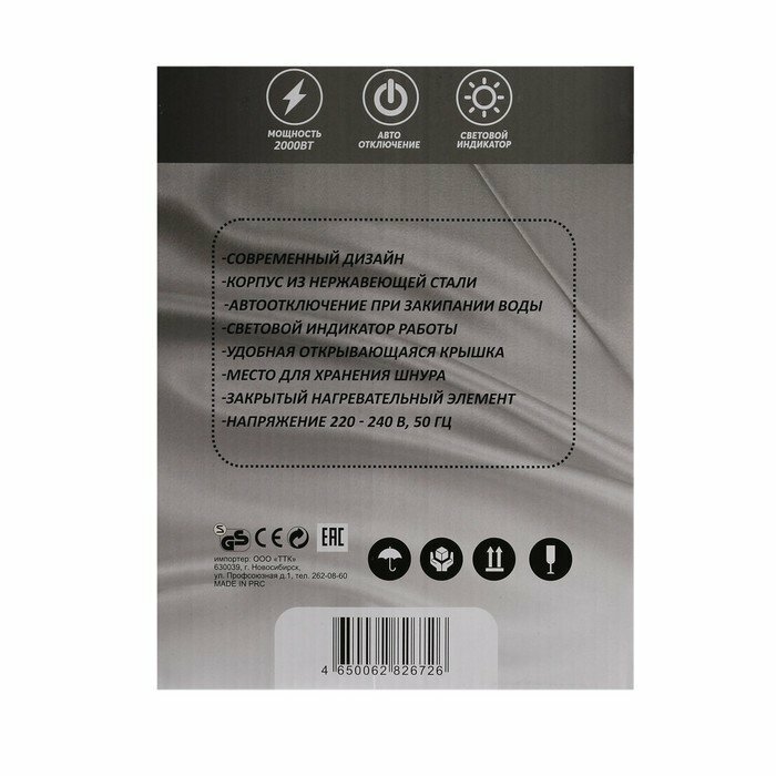 Чайник Электрический 2.0Л 2000ВТ Диск Нерж Петрак на Черн Добрыня DO-1250