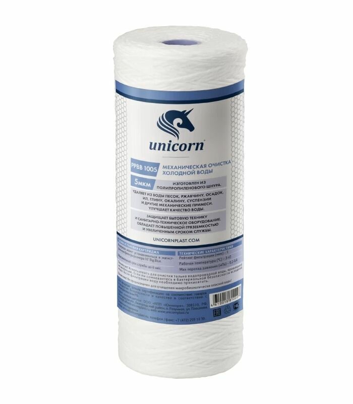 Картридж из полипропиленового шнура Unicorn PP10BB10 для механической очистки воды 10BB, 10МКМ ИС.230057
