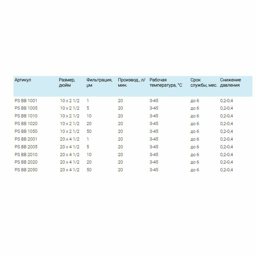 | Дополнительная информация | совместим со стандартными фильтрами типа BigBlue 10"" других производителей (Аквафор, Гейзер, Барьер и пр.) |