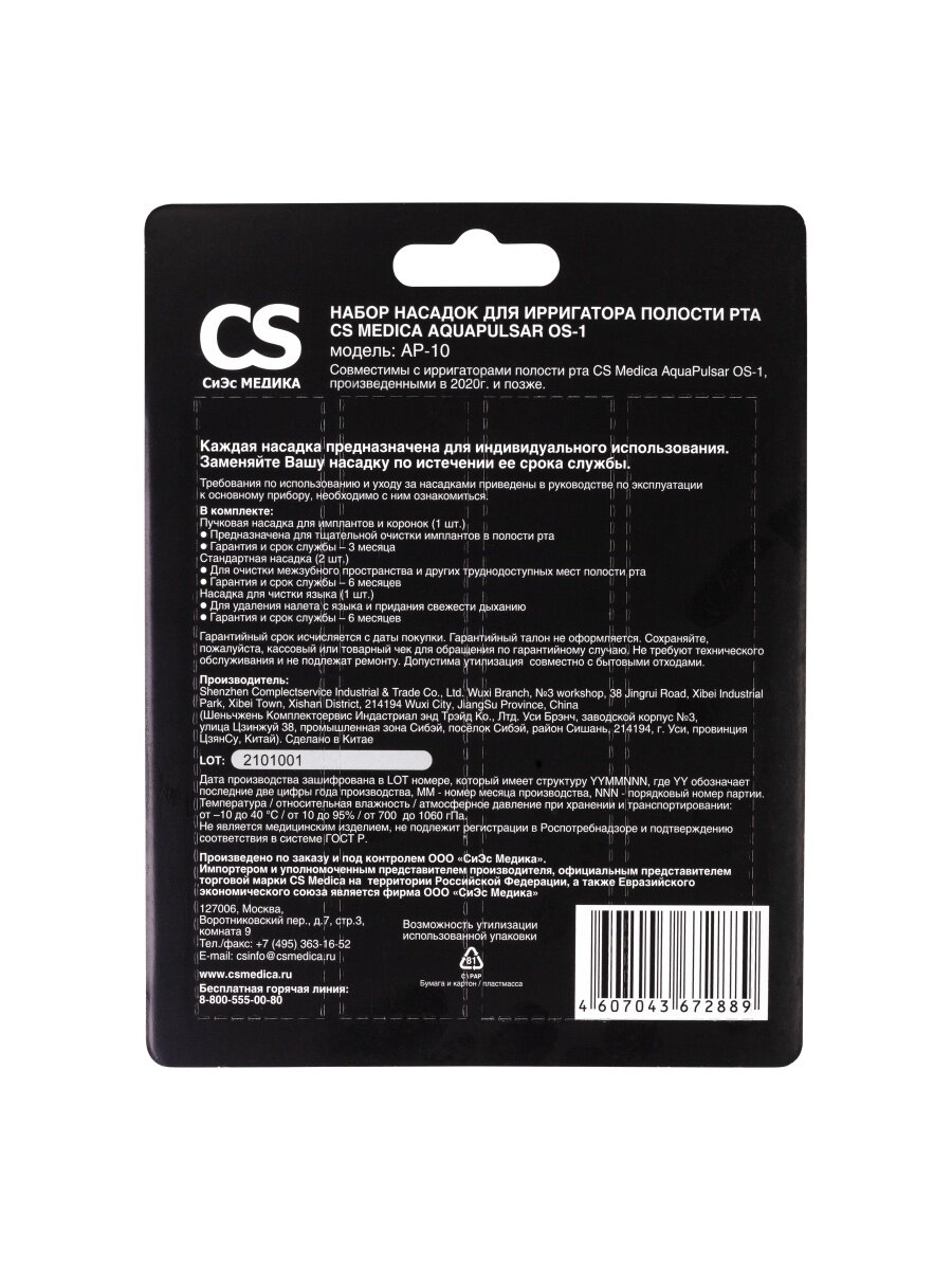 Насадки CS Medica AP-10 для ирригатора полости рта CS Medica AquaPulsar OS-1, 4 шт