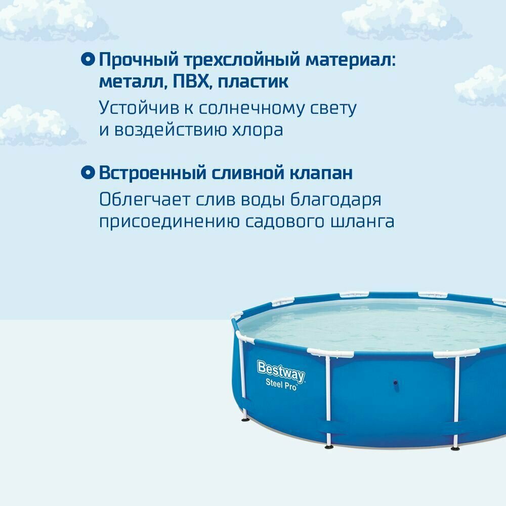Круглый каркасный бассейн Bestway Steel Pro 305х76см, 4678л / бассейн детский / для взрослых / для дачи / большой бассейн