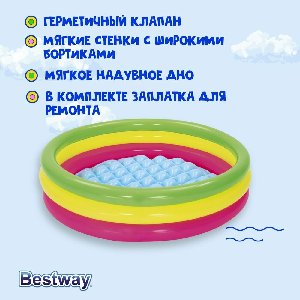 Bestway надувной 102х25см "Лето" с надувным дном, 62л, от 2 лет