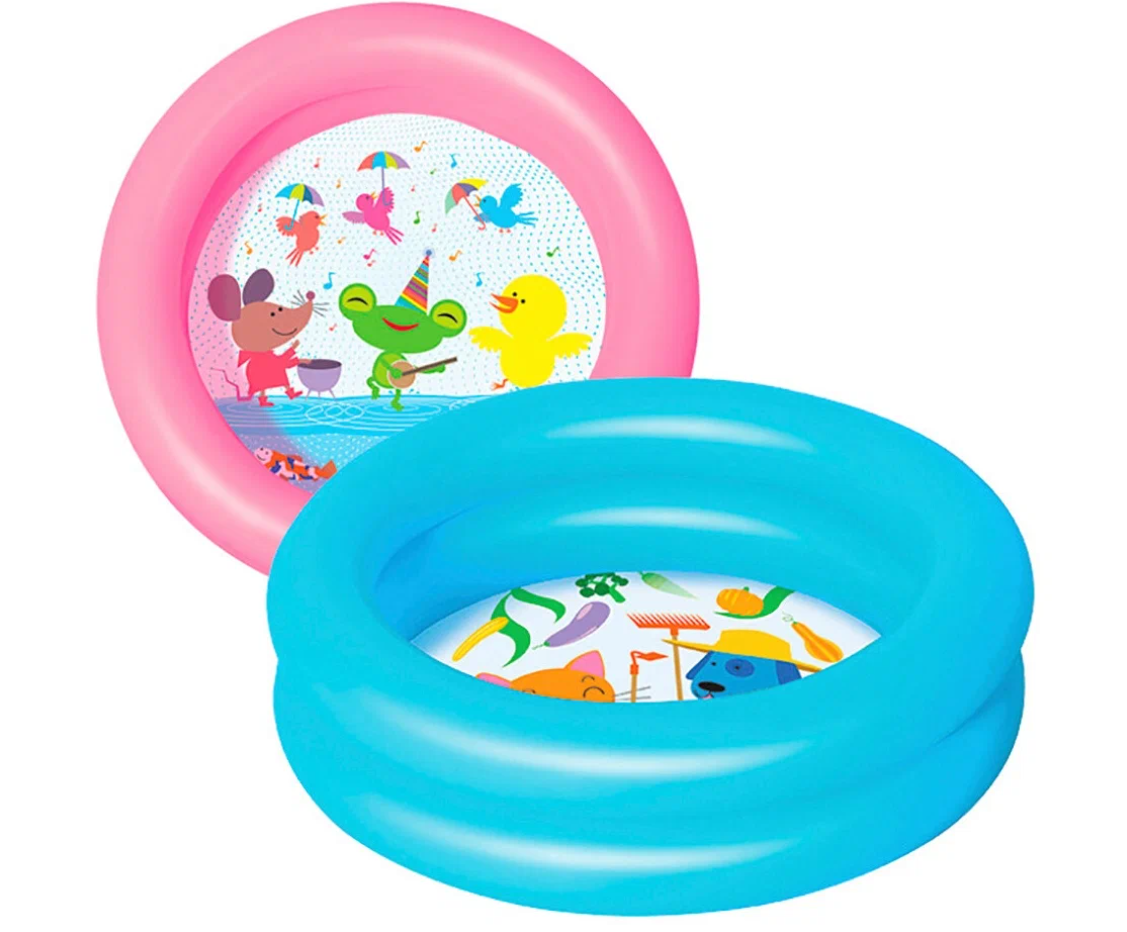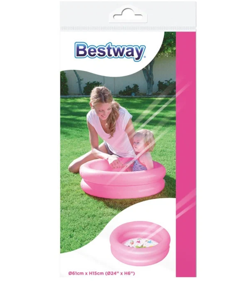 Бассейн надувной Bestway "компания" детский 61Х15 см, на 21 л, возраст 2+, материал ПВХ двухкольцевой борт, сборка за 10-15 мин, для пляжа, для дачи, розовый / 1 шт