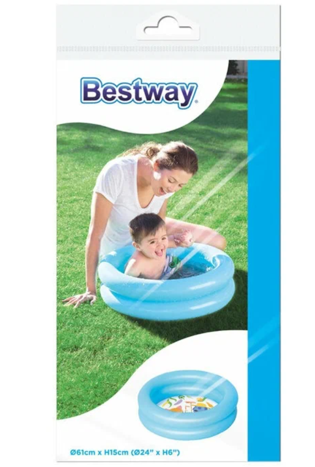 Купить Бассейн надувной Bestway "компания" детский 61Х15 см, на 21 л, возраст 2+, материал ПВХ двухкольцевой борт, сборка за 10-15 мин, для пляжа, для дачи, синий / 1 шт