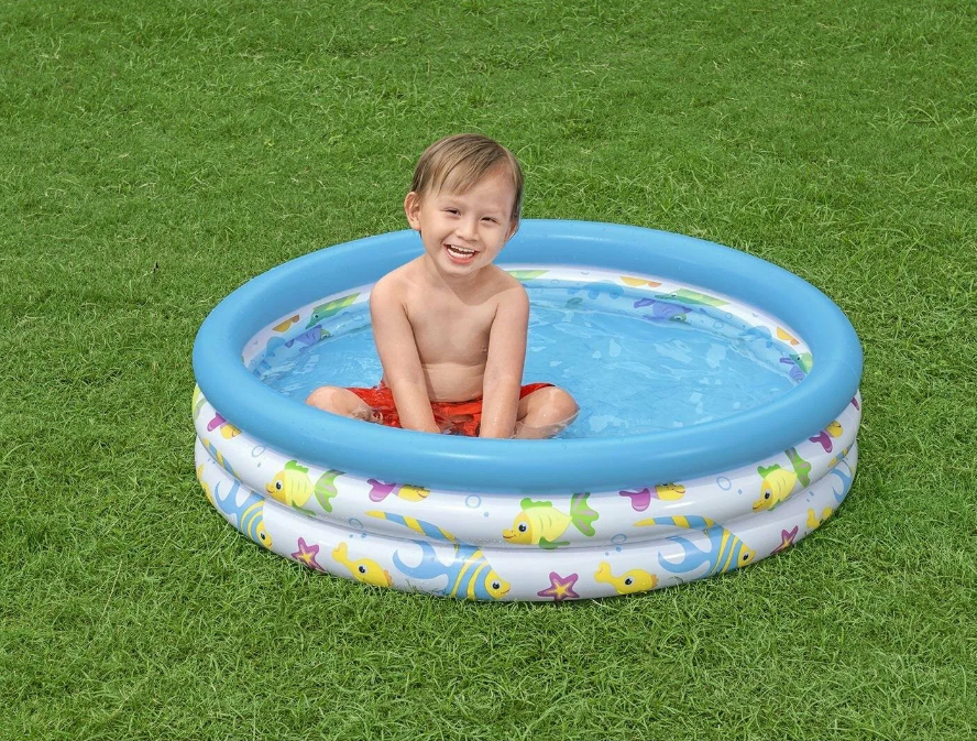 Бассейн надувной Bestway "компания" детский 61Х15 см, на 21 л, возраст 2+, материал ПВХ двухкольцевой борт, сборка за 10-15 мин, для пляжа, для дачи, синий / 1 шт