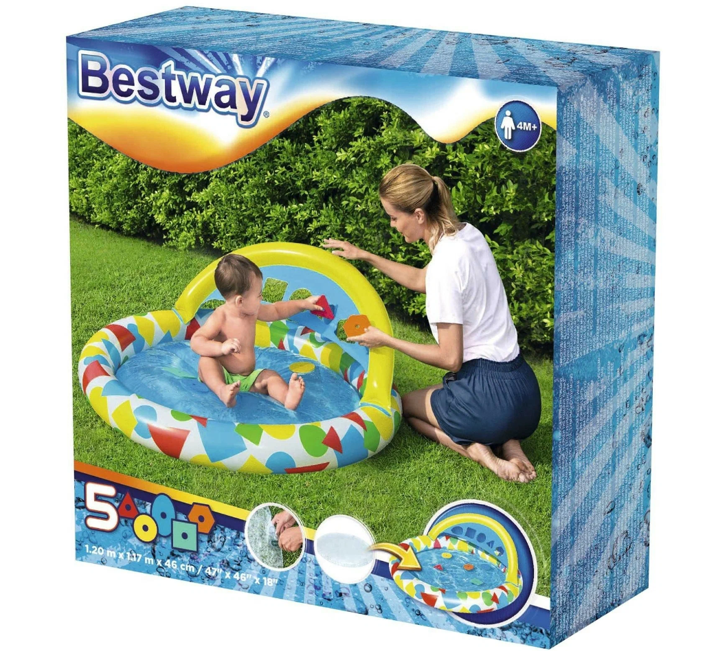 Купить Бассейн надувной Bestway "Сортер+" детский 120х117х46 см, на 45 л, возраст 1+, материал ПВХ упругий борт + козырек с сортером, сборка за 10-15 мин, для дачи, пляжа / 1 шт