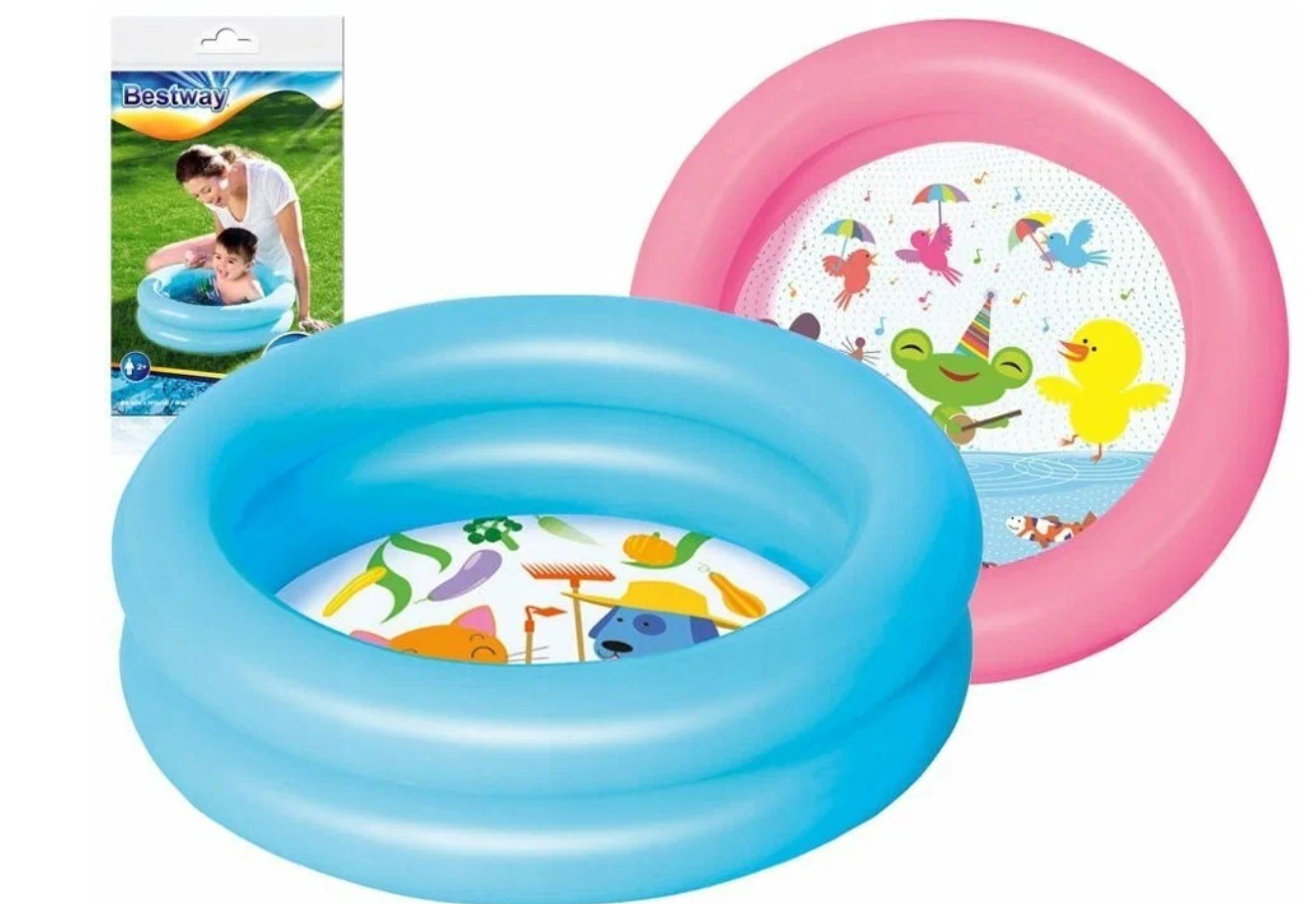 Купить Бассейн надувной Bestway "компания" детский 61Х15 см, на 21 л, возраст 2+, материал ПВХ двухкольцевой борт, сборка за 10-15 мин, для пляжа, для дачи, розовый / 1 шт