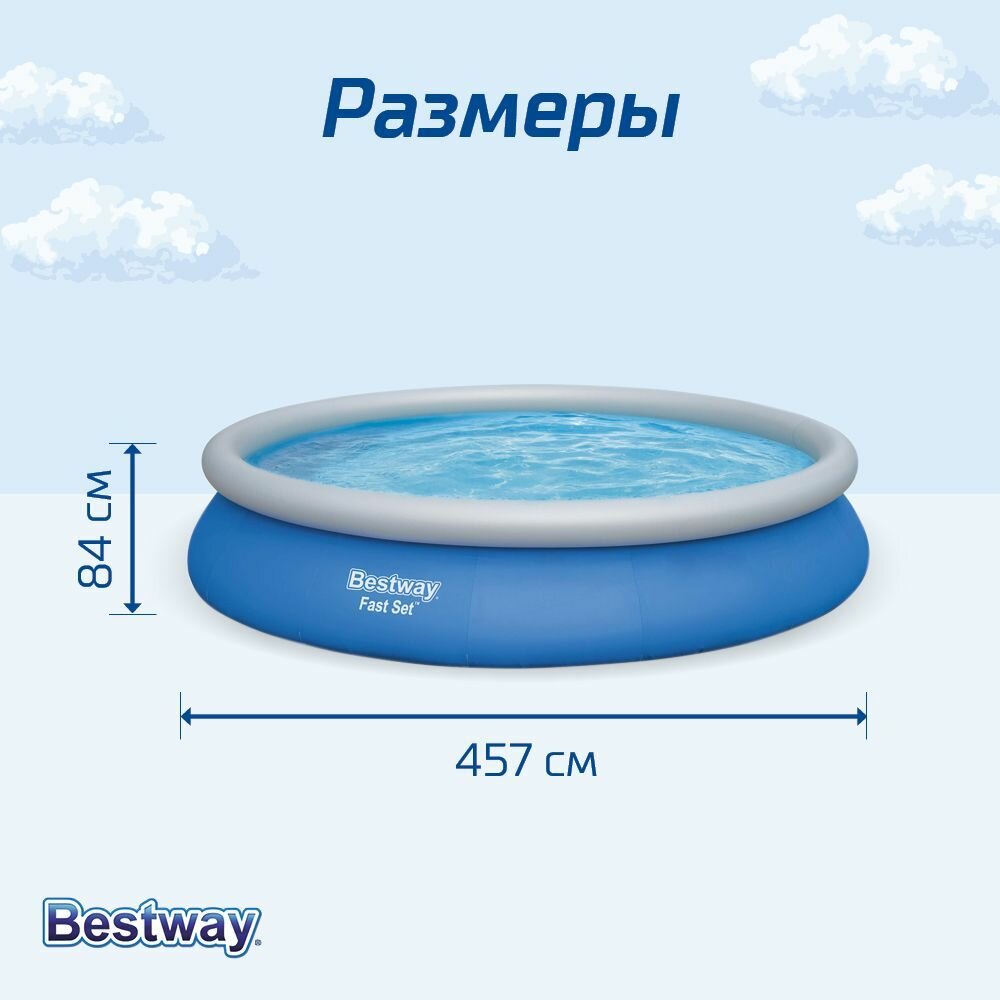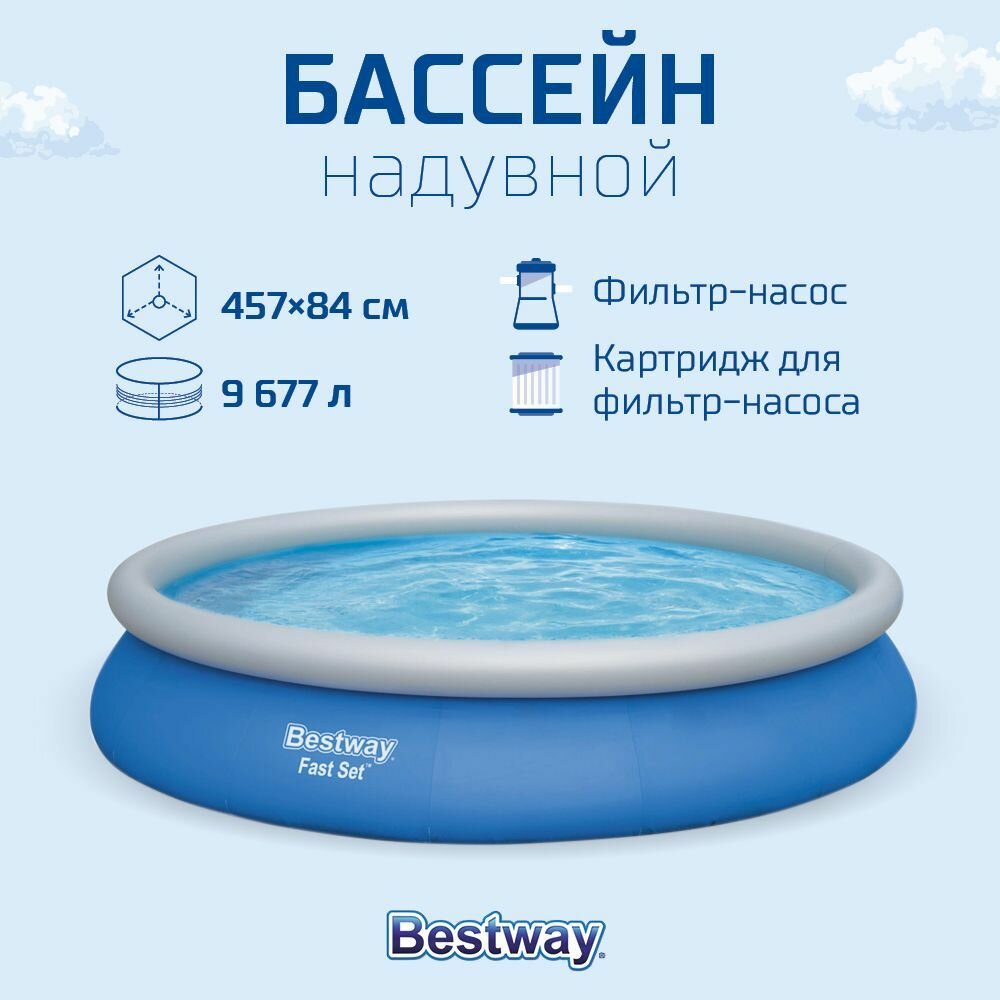 Круглый надувной бассейн Bestway Fast Set Pools (457х84 см, 9677 л.) с картриджным фильтром и насосом для взрослых и детей / бассейн детский / для взрослых / для дачи
